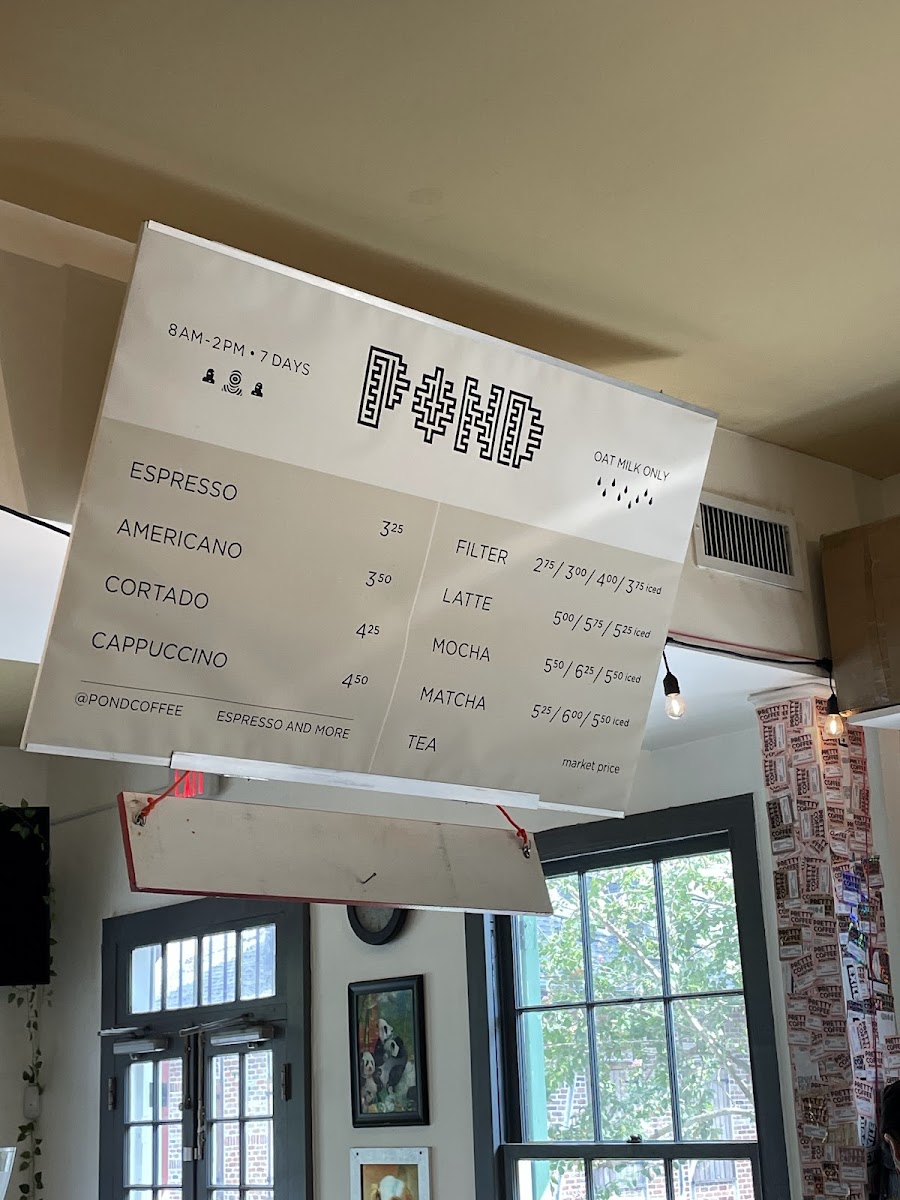 Pond Coffee Menu